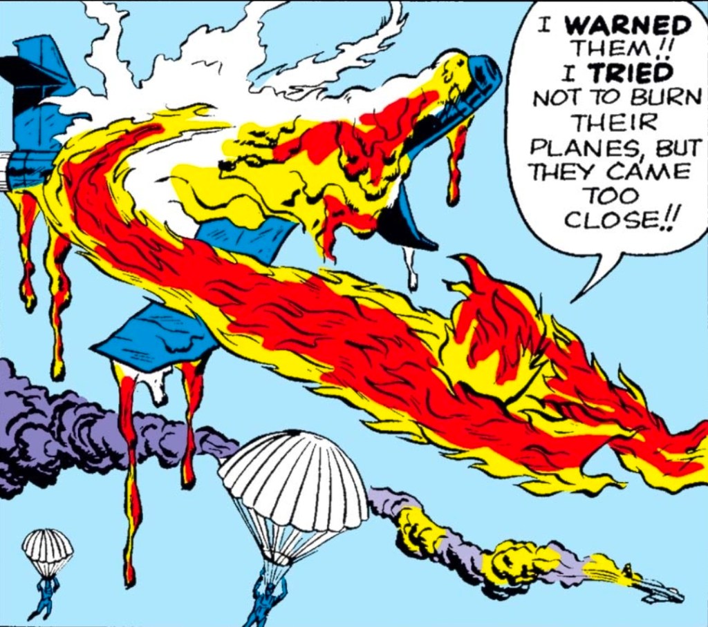 Reed fires a flare into the sky, and each of them has to use their powers in disruptive, destructive ways just to regroup. Ben smashes through walls. Sue causes panic. Johnny quite literally sets the sky on fire.