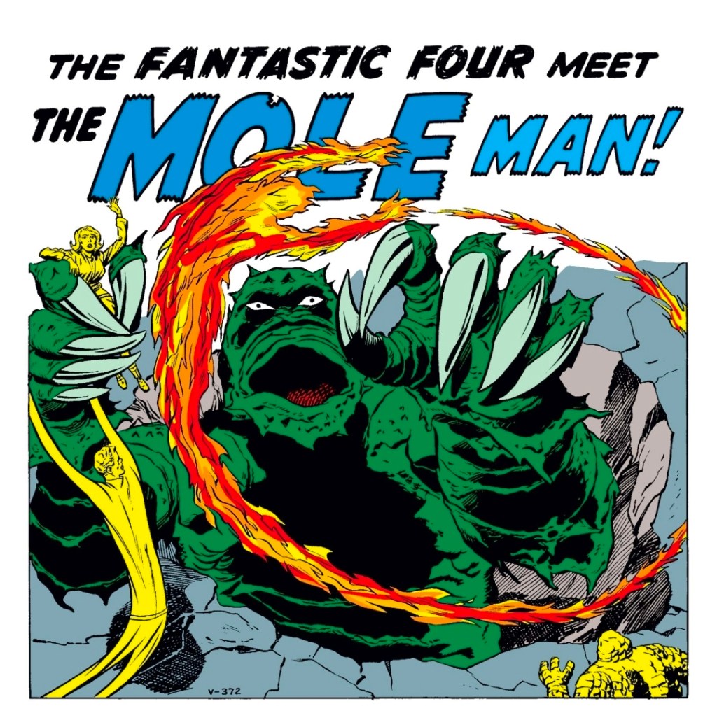 The coloring also jumps out in a way I don’t remember noticing before. There’s a campy, almost horror-comic atmosphere to the underground sequences with the Mole Man. It leans closer to 1950s monster pulp than the superhero mythology Marvel would later build.
