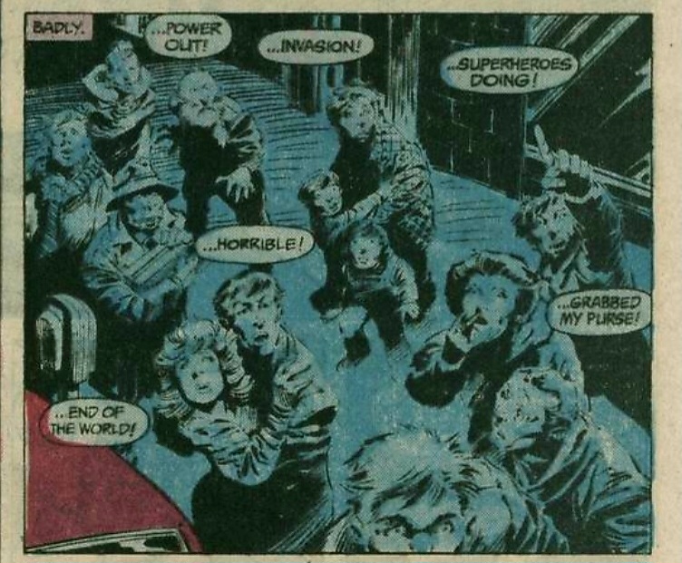 Meanwhile, the entity’s arrival causes a massive blackout across the city, functioning almost like a giant EMP. Down on the street, people panic. And truly feel fear. Because in this world of superheroes blackouts mean alien invasions or war between powerful beings. And where gods clash, everyone on the street feels like they are just collateral damage.