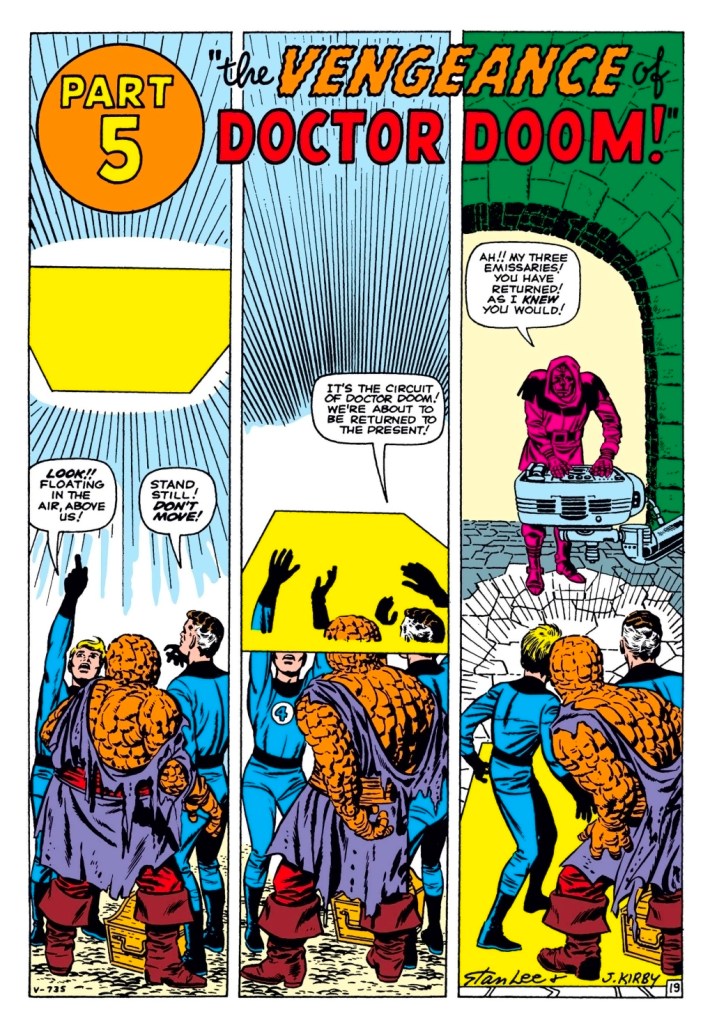 Doom’s time machine is pure Kirby — bold, simple, instantly iconic.