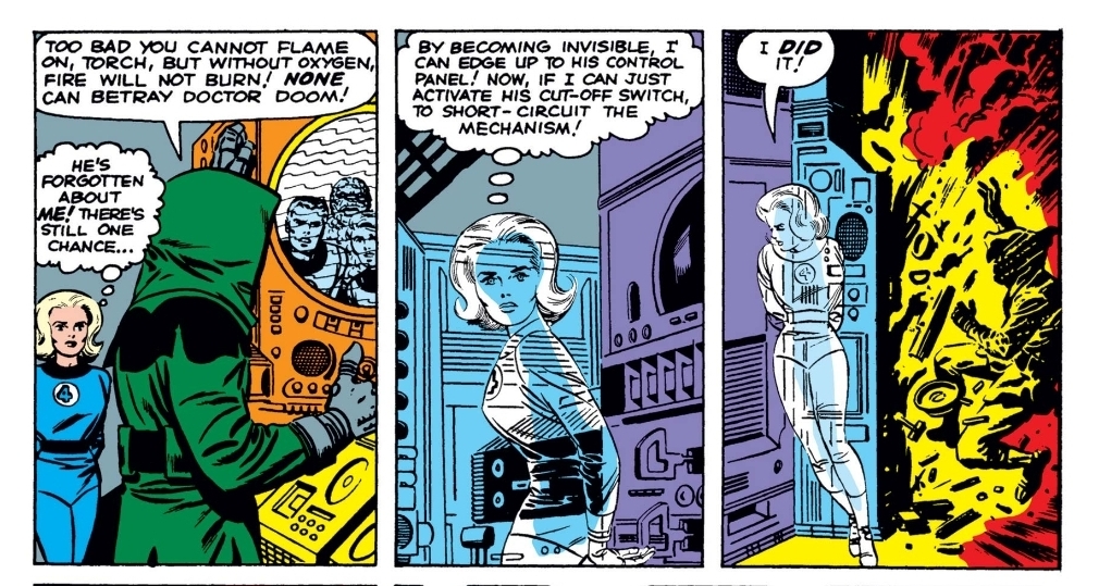 Sue, too, finally asserts herself. Her sabotage of Doom’s machine isn’t accidental or passive. It’s decisive. It’s active. She isn’t just present — she’s crucial. And Kirby’s rendering of this is so unique. It’s cinematic. I know I keep using that word, but it is hard to describe how these pictures seem to move without repeating myself.