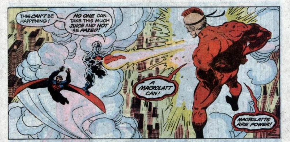 The Justice League is already under attack. Superman and Nuklon—two of Earth’s most powerful heroes—have become vessels for the Macrolatts, who revel in their newfound strength. The scale of destruction is immediate, overwhelming, and almost casual in the way it unfolds.