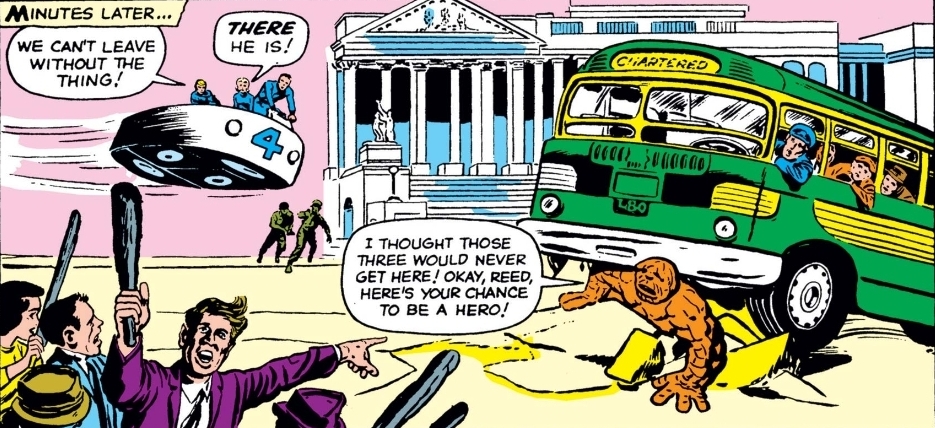 It almost reads like an earlier story that got shuffled into the lineup. Kirby’s designs feel closer to Fantastic Four #3 than #6. The scope shrinks. The structure slips back into something more familiar.