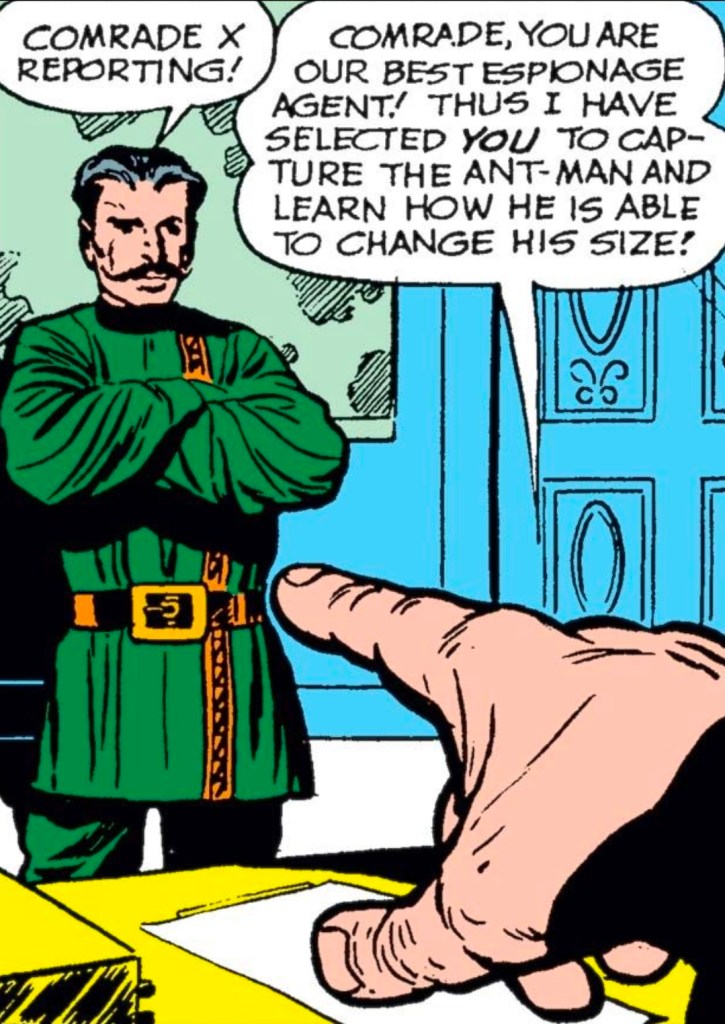 There’s a damsel in distress. A mysterious villain. And, of course, communists. This time it’s Comrade X, trying to steal Pym’s shrinking secrets — which, at least, makes a little more sense than some of Marvel’s other Cold War threats.