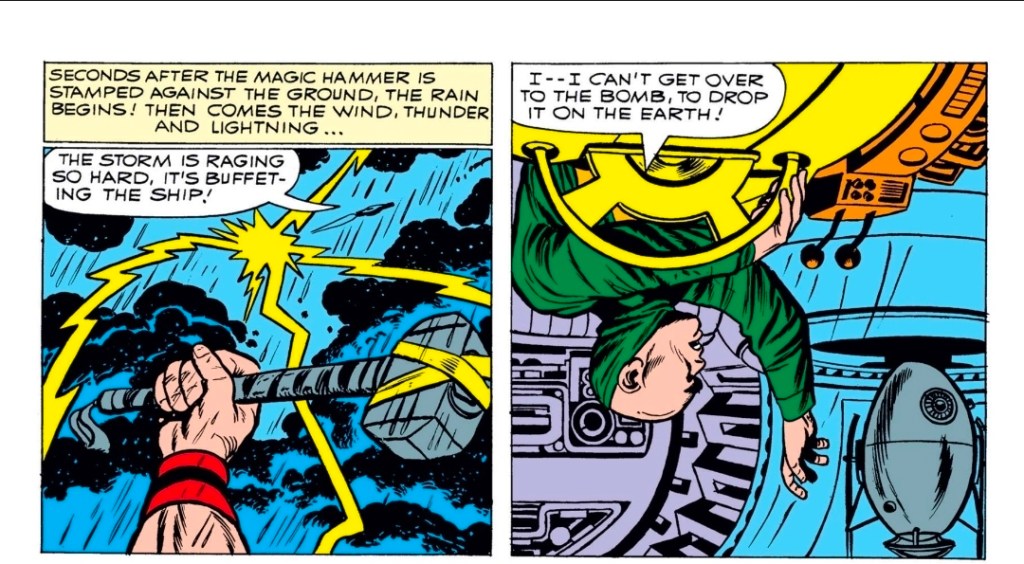 So while the issue doesn’t quite know what kind of Thor story it wants to be, Kirby absolutely knows what kind of comic he wants to draw.